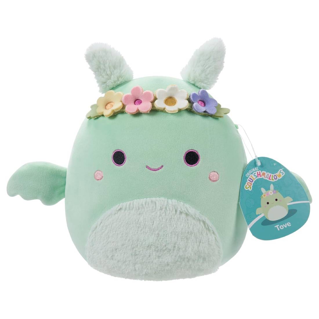 Squishmallows: Little Plush Tove The Mothman With Flower Crown & Fuzzy Belly "7.5 - Mint Green - دمية