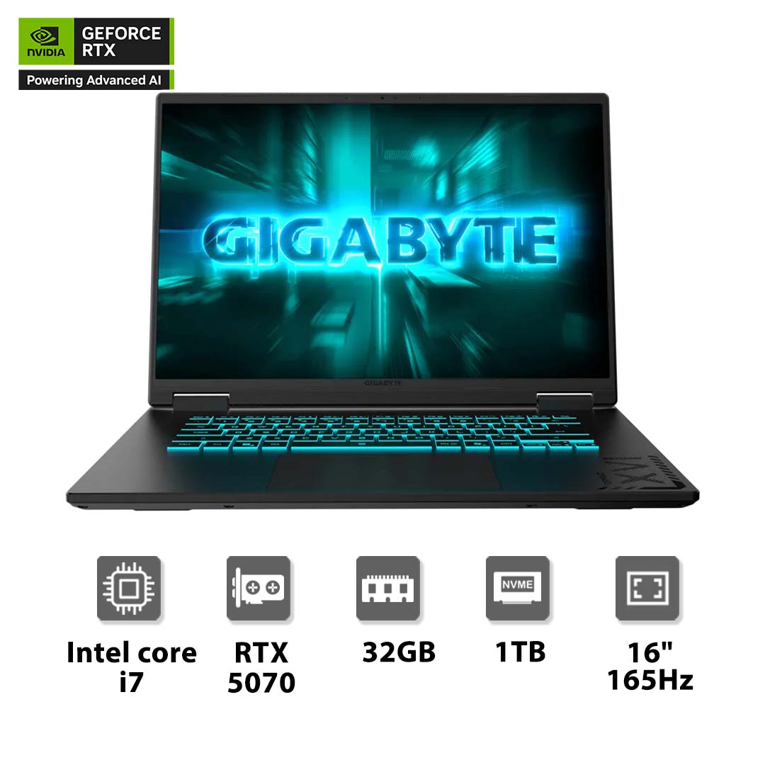 Gigabyte A16 GA6H Intel i7 RTX 5070,16'' FHD Gaming Laptop - حاسوب محمول