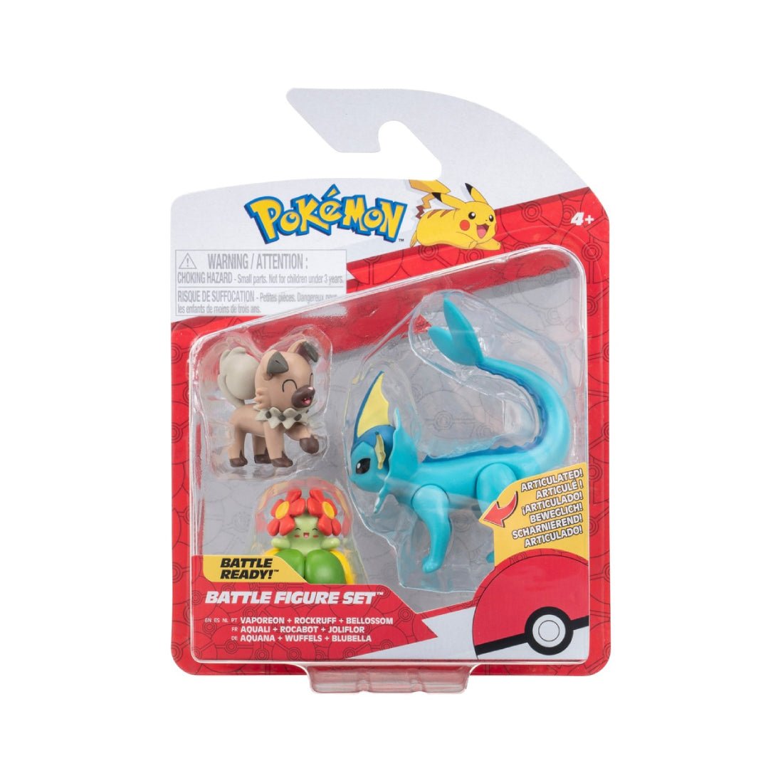Pokemon Battle Figure 3 Set Pack - Vaporeon/ Rockruff/ Bellossom - مجسم